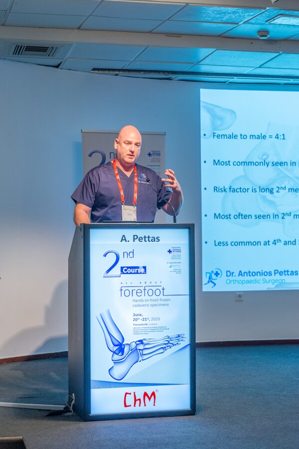 We are pleased to announce the organization of the 2nd Cadaveric Course “All about forefoot – Ηands on fresh frozen cadaveric specimens” which will take place on June 20th – 21st, 2025, in Thessaloniki, Greece..