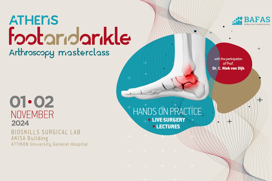 We are pleased to announce the organization of the Athens Foot and Ankle Arthroscopy Masterclass which will take place on November 1st – 2nd, 2024, in Athens, Greece.